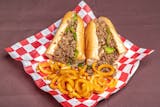 Pastrami, onions, peppers, cheddar cheese & Russian dressing.
